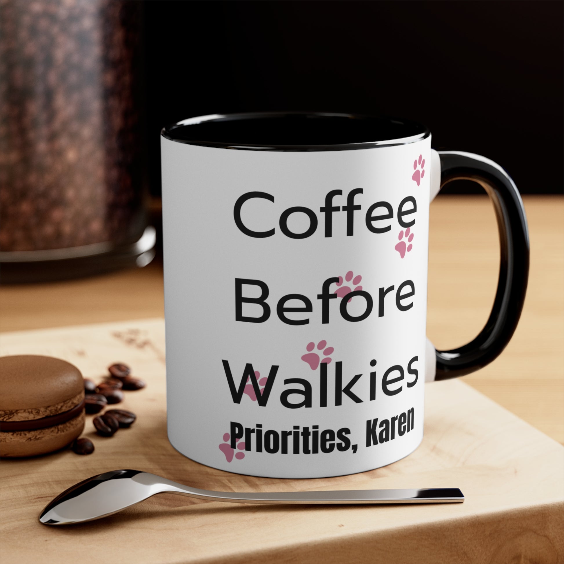 Coffee Before Walkies Mug — Funny Dog Lover Gift (Personalize: "Karen")